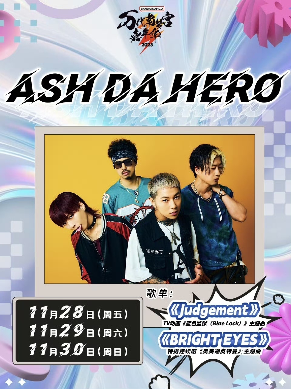 中国・上海で開催される「BANDAI NAMCO FES 2025」のライブステージにASH DA HEROが出演決定!